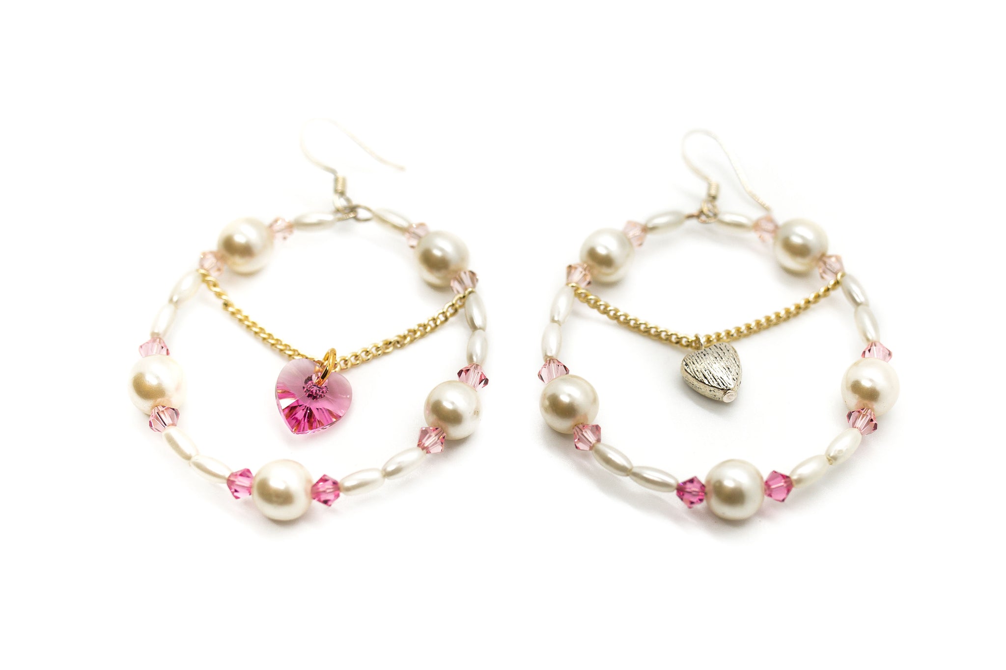 Pearls, pink crystals, hearts! How does one get any sweeter than this. The Sweetheart Hoops are simply romantically adorable.